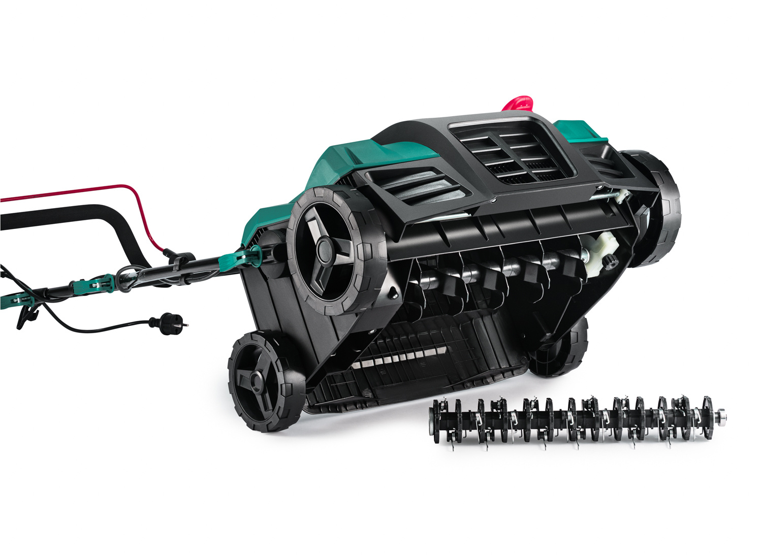 - Funkcja 3w1 - aeracja i wertykulacja: osobne wałki do kompleksowej regeneracji trawy i zbieranie do kosza.