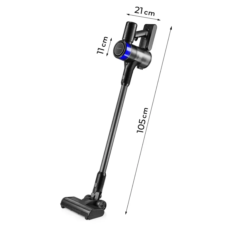Dzięki mocnej baterii zapewnia długi czas pracy, a dodatkowo, każdy z trybów posiada swój dedykowany kolor podświetlenia LED na korpusie odkurzacza.