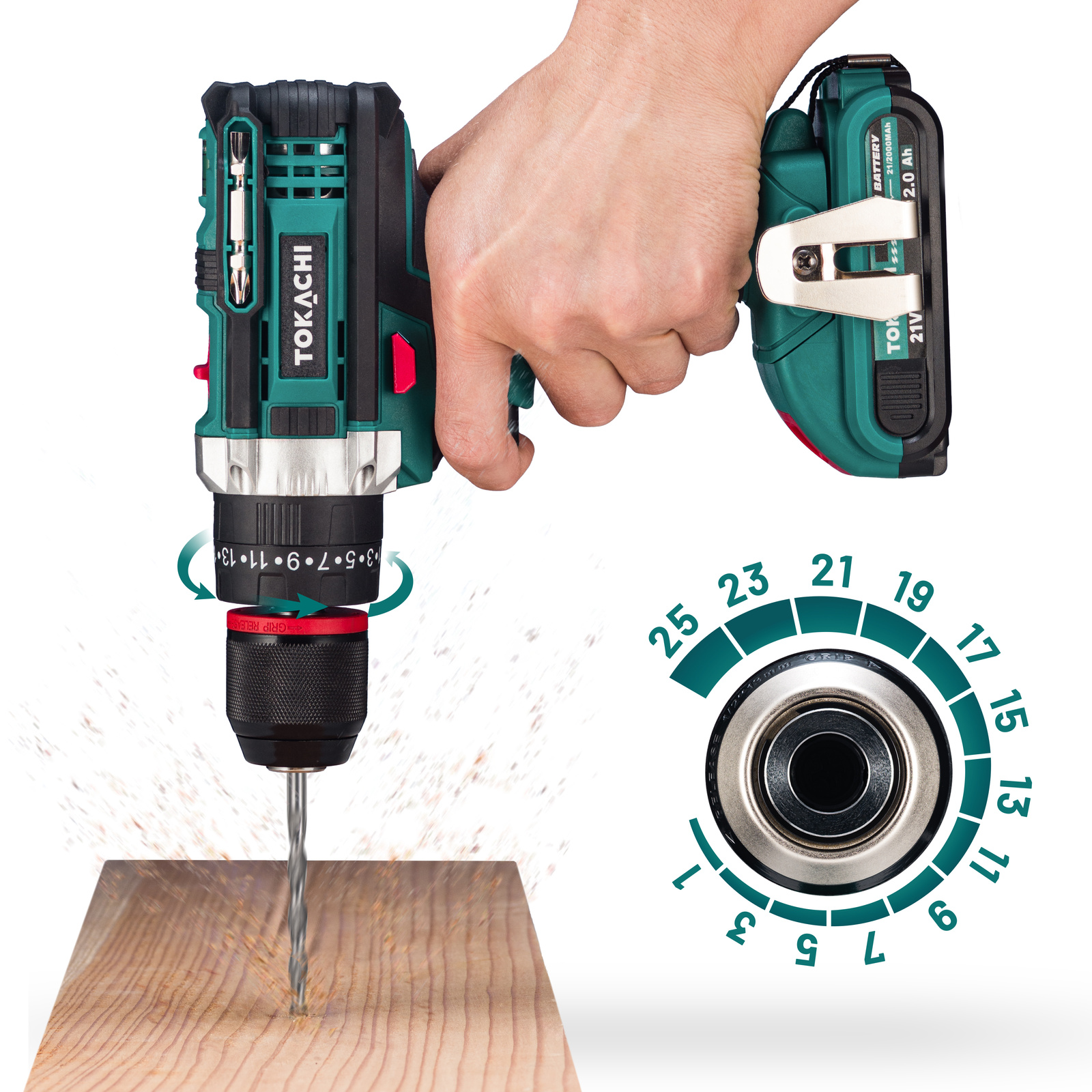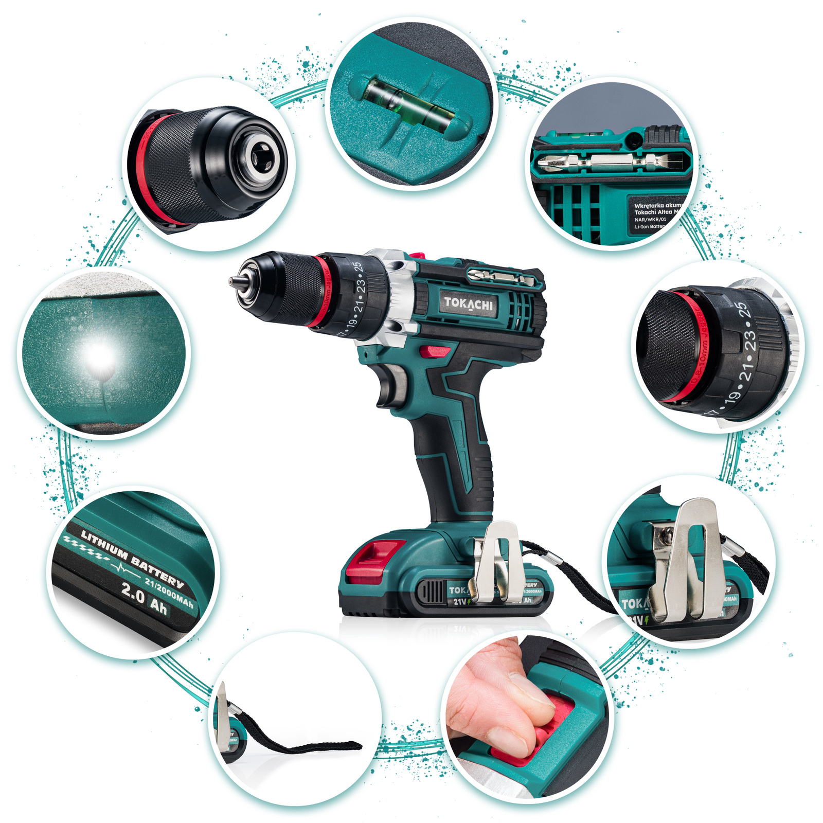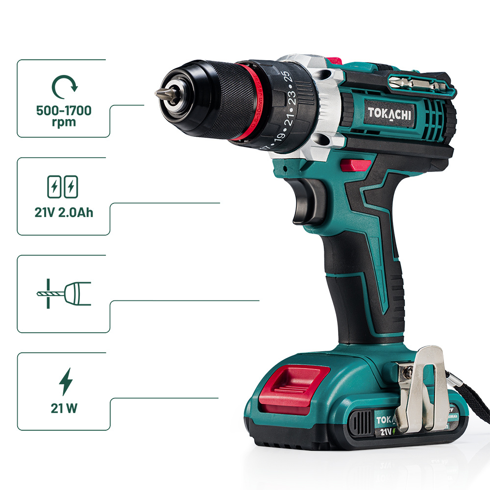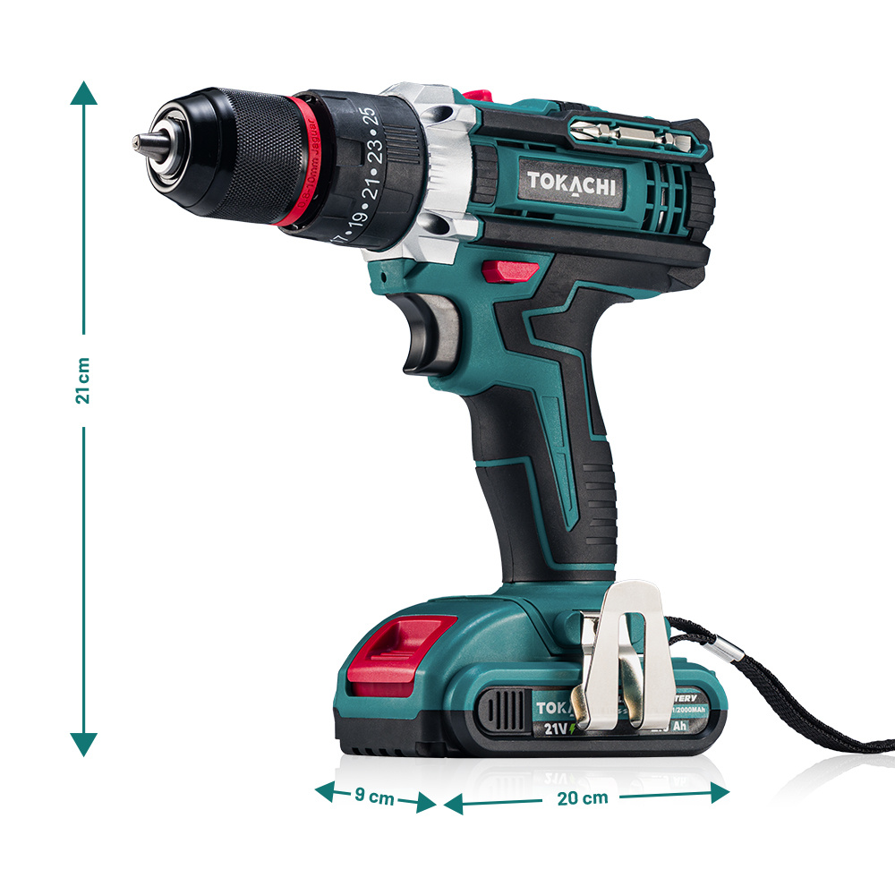 - Dwa pojemne akumulatory 21V 2Ah: dłuższa praca bez przerw na ładowanie.