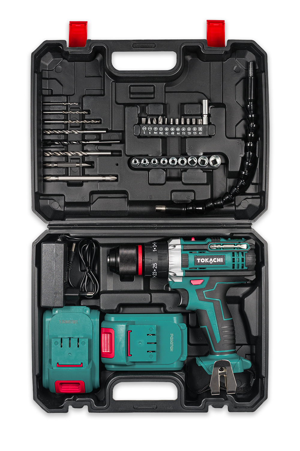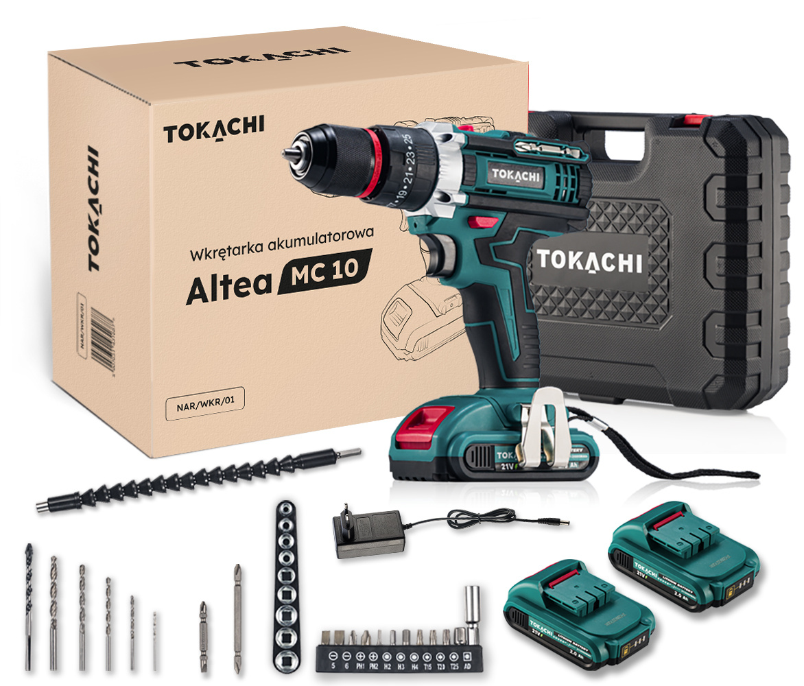 - Bogaty zestaw akcesoriów: w walizce znajdziesz m.in. przedłużki, nasadki, bity, wiertła i dwie baterie gotowe do działania od razu po rozpakowaniu.
